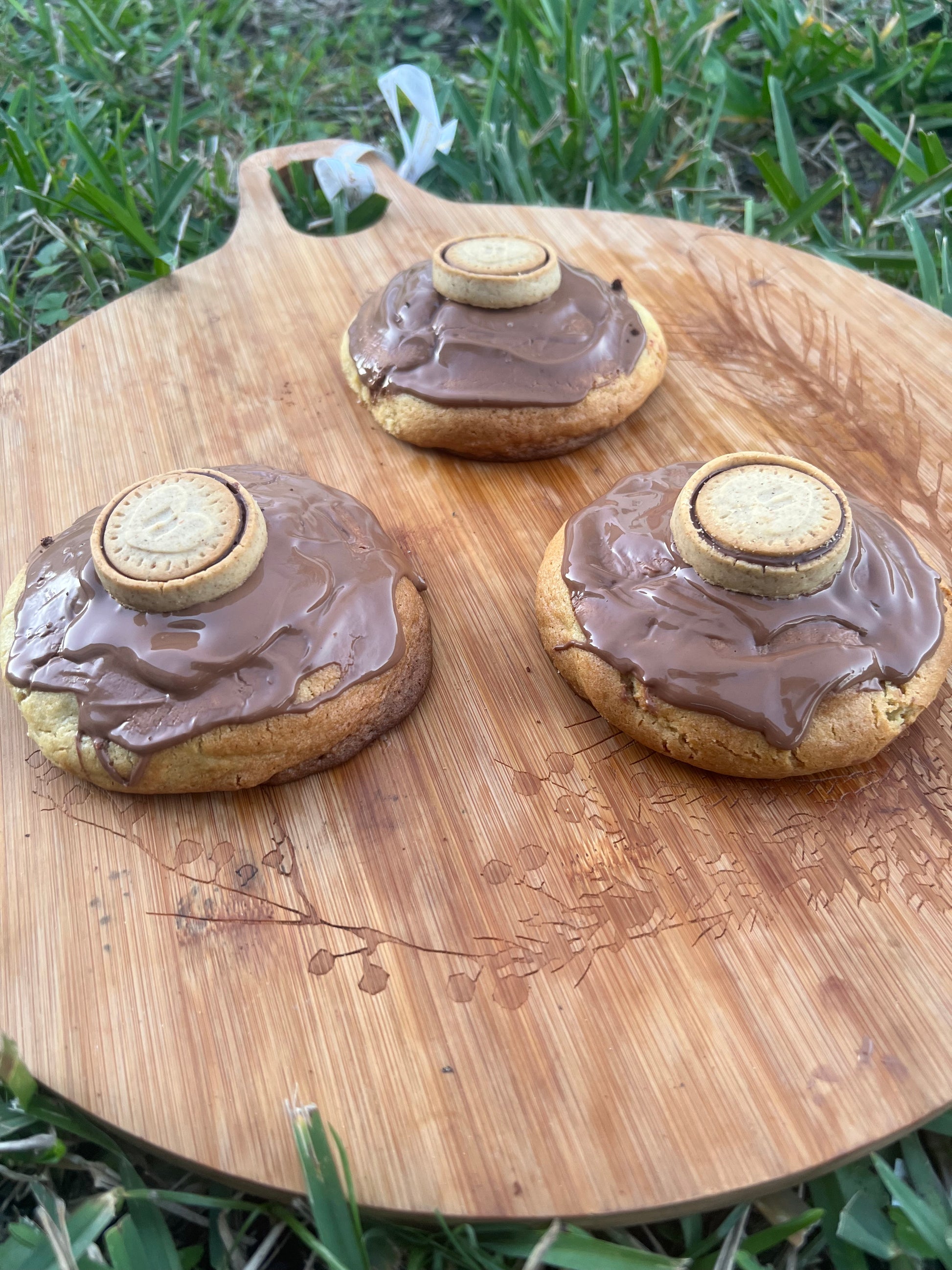 Galletas de Nutella con un centro cremoso de Nutella y una rica cobertura de chocolate con leche, con un peso de 6 onzas cada una.