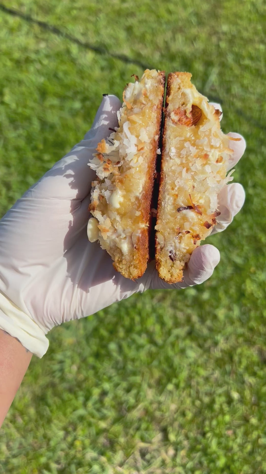 Deléitese con nuestras Galletas de Coco, cuidadosamente elaboradas, generosamente rellenas de delicioso coco rallado y exquisitas chispas de chocolate blanco, además del toque crujiente de almendras y coco rallado. Cada galleta pesa 170 g, ¡perfectas para satisfacer cualquier antojo!